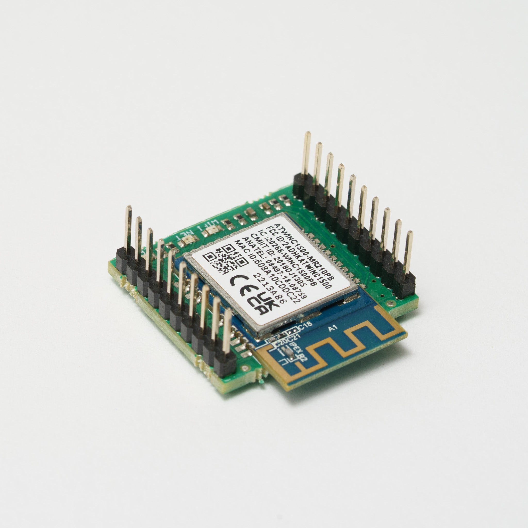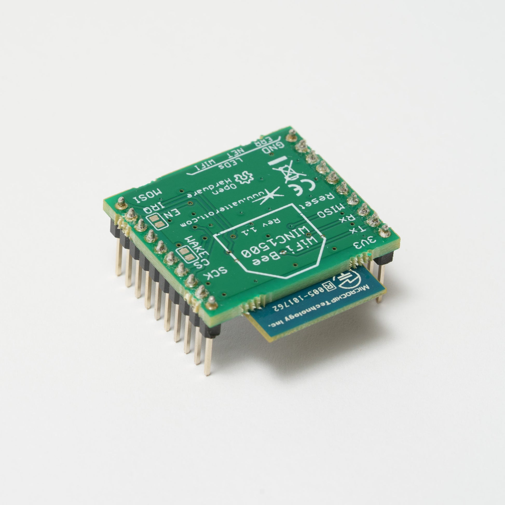 Verbindungsstück, um die senseBox mit dem Internet zu verbinden. Die Daten der senseBox werden per WLAN (WiFi) in das bestehende Netzwerk übertragen. Das WiFi-Bee basiert auf dem ATWINC1500 Mikrochip von Atmel, welcher einen sehr geringen Energieverbrauch und eine hohe Reichweite hat.